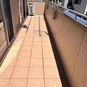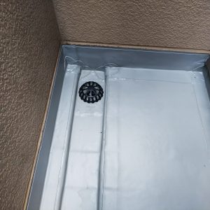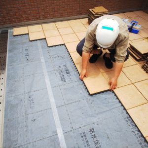 戸建住宅バルコニー 塩ビシート防水 歩行パネル設置