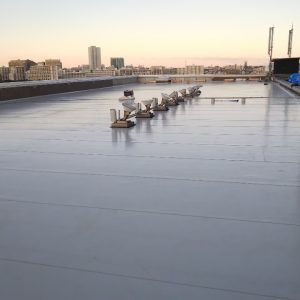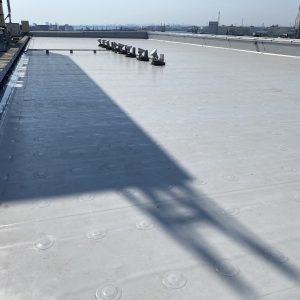 物流倉庫屋上 塩ビシート防水 機械固定工法